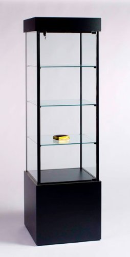 #SFL906 Economy Square Tower Case. Standard:. Tempered glass. 2 50 watt halogen top lights. Three adjustable 1/4" thick glass shelves. Laminated deck. Locking hinged door (security lock). Dust resistant. Wheels. Electrical cord with switch. Dimensions and Weights:. Width 24". Depth 24". Height 78". Top Canopy 5". Bottom Cabinet 20.5". Glass Height 52.5". Weight 187 lbs. Crated weight 255 lbs. Please note: Color not as shown