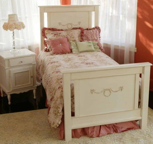 #The Alexis Bed with Rose Garland will add a touch of beauty to your child's room. Made of solid hardwood, this gorgeous bed touts sturdy construction that will last years. The Alexis Bed with Rose Garland features a special Rose Garland appliqué. This bed is available in Twin, Full, Queen, King and CA King sizes. Optional trundle is available for twin or full sizes.