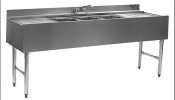 B8C-22?2200 Series Underbar Three compartment Sink Unit, 96" L x 24" D, (3) 10" x 14" x 10"D sink bowls center, (1) faucet, standpipe drains, 4" deck, (2)31" drainboards, type 304 stainless steel top, stainless steel front & ends, bullnose front edge, galvanized back panel & legs, adjustable feet, NSF