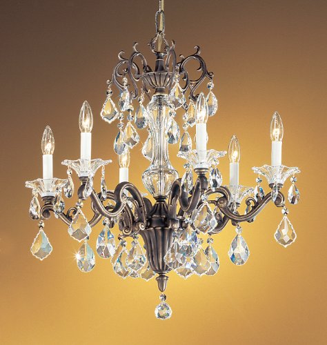 Classic Lighting 57106 RB CGT Crystalique Golden Teak Via Firenze 27" Crystal Chandelier from the Via Firenze Collection 57106-RB?Uses six 60W candelabra bulbs. Finish Shown: Bronze with Black Patina. Crystal Shown: Crystalique. 26 in. L x 26 in. W x 27 in. H