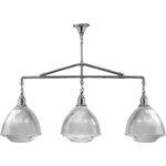 #Vintage modern lighting from the influential New York designer and home furnishings merchant Thomas O'Brien. Retro and industrial styles meet up with chic glamour and sophisticated finishes, ideal for town or country.Body Height: 27 Canopy: 6-3 4" Round Collection: Thomas O'Brien Finish: Antique Nickel, Bronze, Hand Rubbed Antique Brass, Polished Nickel Glass: Industrial Prismatic Height: 47 Minimum: 35 Number of Lights: 3 Socket: Keyless Type: Island Lights Wattage: 100 A Width: 66