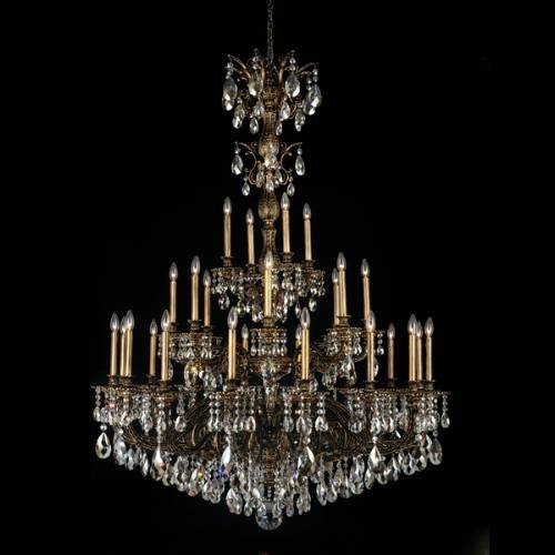 Schonbek 5688-76TK Heirloom Bronze/Golden Teak Milano 28 Light Up Lighting 3 Tier Chandelier 5688?Italy and artistic mastery are synonymous. Milano is a tribute to the country that enlightened the world with the gifts of Michelangelo and Da Vinci. The ornate body of Milano is composed entirely of Italian castings. Filigree openwork gives these baroque castings a unique lace-like quality.Application Indoor: Dining Room, Hallway, Living Room, Entry Bulb Type: Incandescent Collection: Milano Effect: Decorative Functional Hang Weight: 133 pounds Height: 68 Lamp 110v: B10 [Base E12 ] X 28 ( 60 MAX ) ( 25 REC ) Not Included Length: 50 Light Direction: Up Lighting Number of Lights: 28 Number of tier: 3 Style: Tuscan Type: Crystal Chandeliers