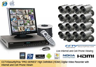 "Pro Series" Complete 16 Camera Indoor/outdoor Color Sony Super HAD CCD Infrared Security Camera Surveillance System with Internet and Cell Phone Viewing During the day, the "BLACK KNIGHT" Surveillance Camera delivers a high resolution STUNNING color picture. The cameras provide you with a 90 degree standard wide angle view and deliver a clear, high resolution viewing area during the day up to 250 feet away. The "BLACK KNIGHT" works exceptional in both low light and even NO light applications due to the 30 built in Infrared Illuminators. These Infrared Bullet Cameras are small and discreet. You may mount these cameras to the ceiling or wall. Expect SUPERB video quality and definition. The "PRO SERIES" H.264 G4 Digital Video Recorder has a built in hard drive for a minimum of 1 month of 24/7 recording and up to several months or recording if you utilize the motion detection recording function. It has H.264 Compression for Long Video Storage, Internet and Cell Phone Viewing, Email and Cell Phone Alerts with Snapshot, 30 Frames per Second per Camera (TV Quality), Central Monitoring Station, and UNLIMITED DIGITAL ZOOM. If you choose, plug the Ethernet cable in from the DVR to your modem or router and view your cameras on your network, on the Internet, and on your Cell Phone from anywhere in the world - with no additional monthly fees. Experience high definition quality and monitor your most important assets. The bottom line is, the Digital Video Recorder is vital to the performance and reliability of your system. The "PRO SERIES" delivers quality and reliability that you will trust.
