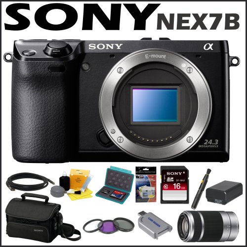 Sony DSLR NEX7B 24.3MP Digital SLR Camera Body + 55-210mm Nex System Zoom Lens + 16 GB Memory Card + Camera Bag + 3 Foot Mini HDMI Cable + Accessory Kit