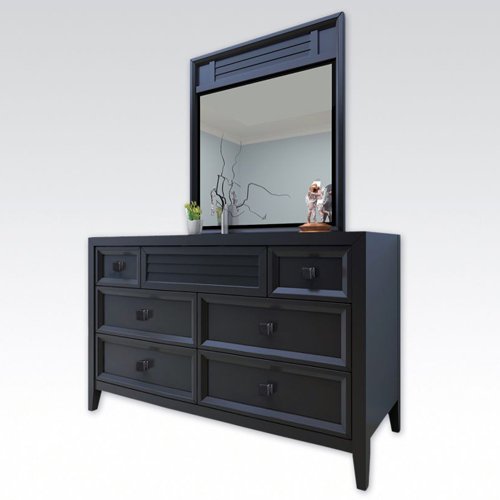 FeaturesHardwood solid constructionKenlin metal track drawer glidesMulti step ebony finishDresser 34.25"H x 54"W x 17.75"DMirror 40"H x 36"W x 17.75"D BROADWAY DRESSER AND MIRROR BLACK?