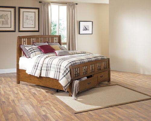 #With the rustic beauty of detailed oak veneers bathed in a warm brown finish, the Kelvin Hall King Storage Bed by Signature Design by Ashley features a warm craftsmanship with the pierced headboard design and the framed details to create a collection that will fit comfortably within any home environment.
